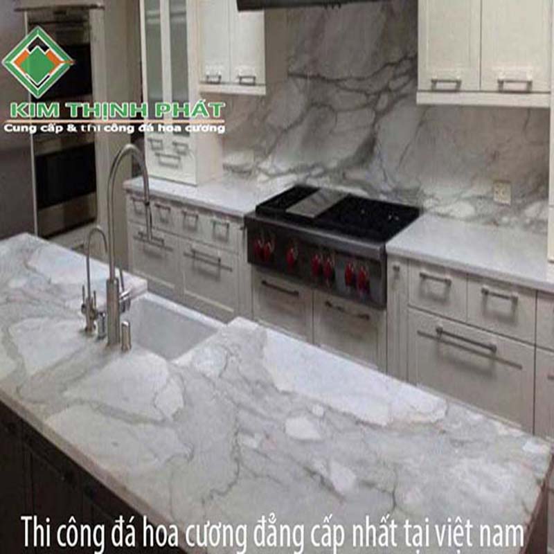 Đá cẩm thạch (đá marble) đứng đầu danh sách đắt nhất do một phần lớn là vẻ ngoài trang nhã của nó. Ưu điểm: Nó sẽ ngay lập tức nâng nhà bếp hoặc phòng tắm của bạn lên một tầm cao mới. Tuy nhiên nó yêu cầu một số bảo trì thường xuyên để đảm bảo vẻ đẹp ban đầu của nó. Giá mặt bàn đá bếp khởi điểm thấp nhất là từ 1.520.000đ/ mét dài (hoặc vuông).
